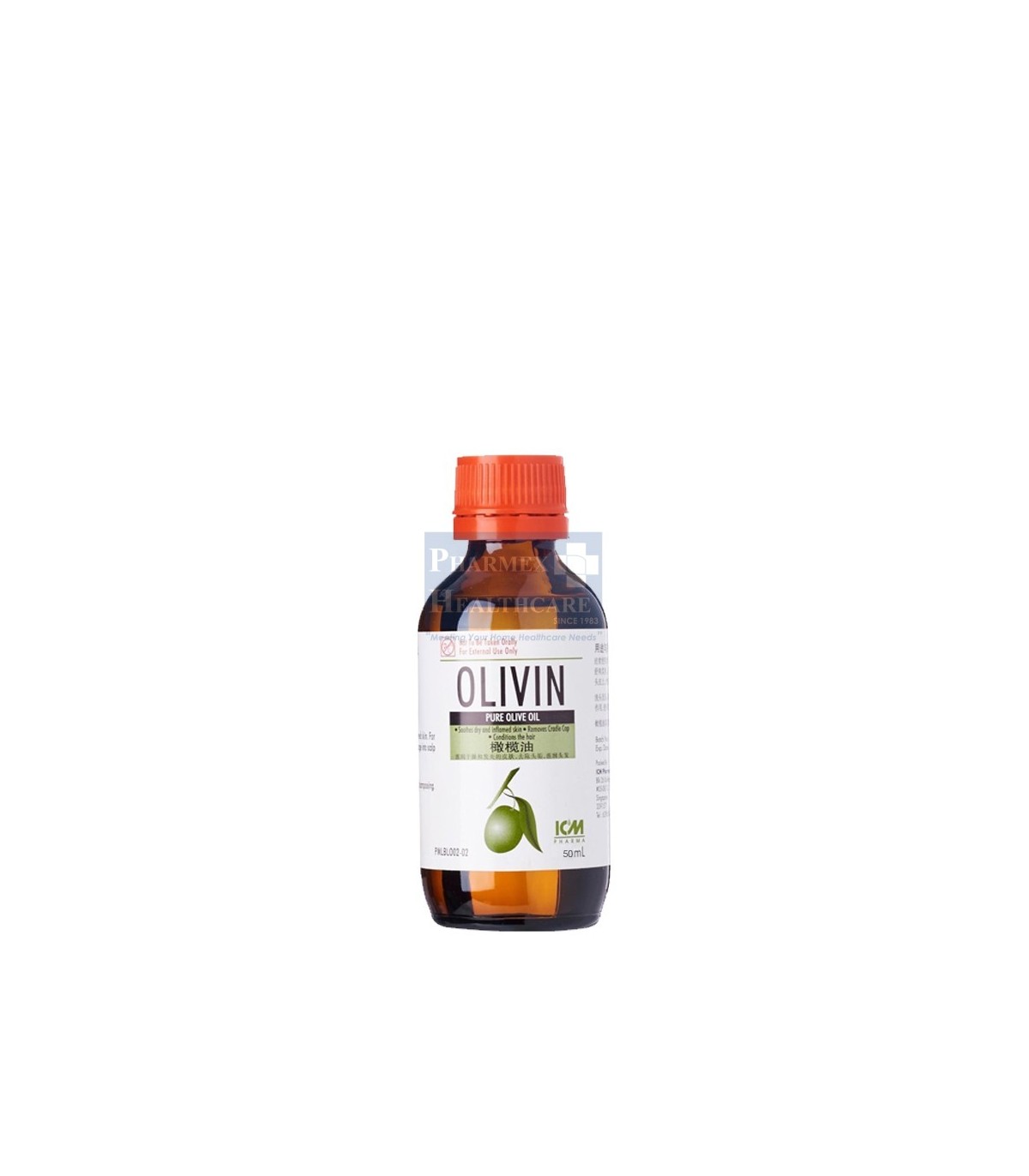 Contains pure olive oil and fragrance. Olivin is used to soothes and softens dry and inflamed skin. It removes cradle cap easily in infants and conditions the hair making your hair soft and manageable.