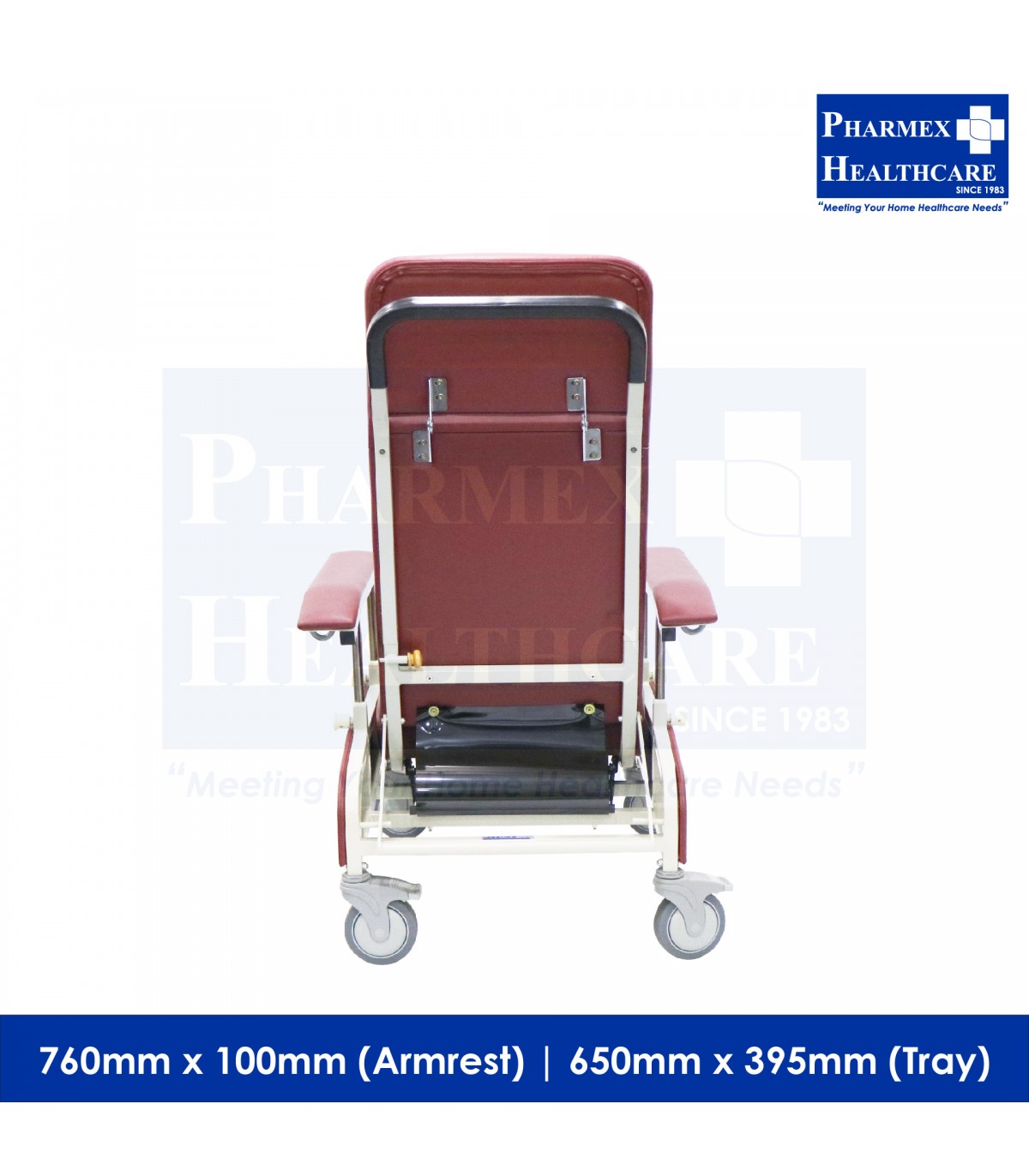 Comfortable yet sturdy, this chair allows for a partial or full reclining position. The adjustable height of the armrest also allows for the easy transfer of patients.