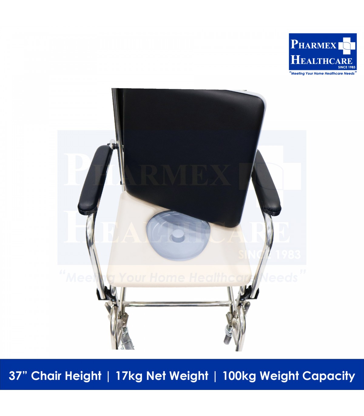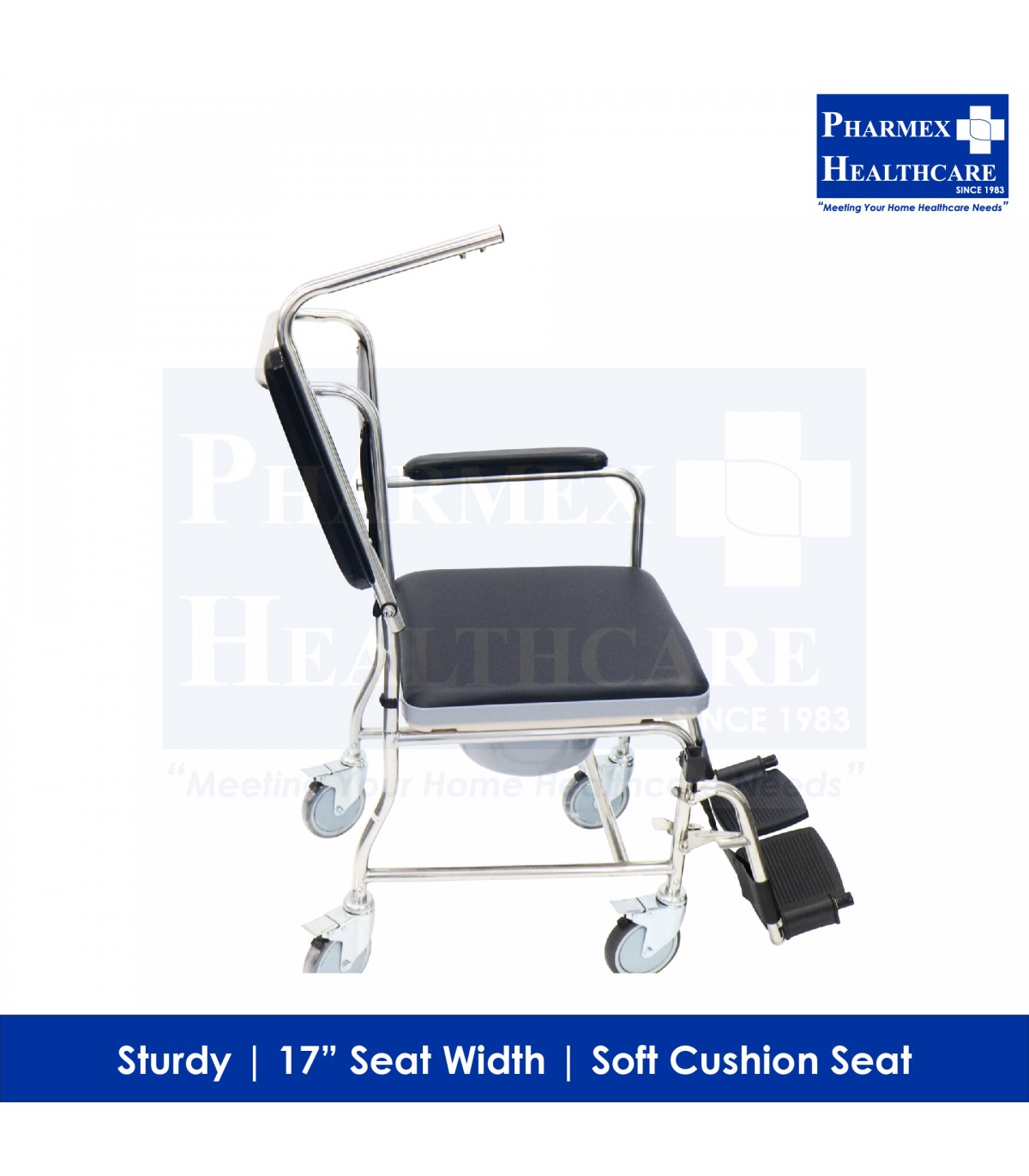 ASSURE REHAB Stainless Steel Commode - Flip-up Armrest and Extendable Footrest